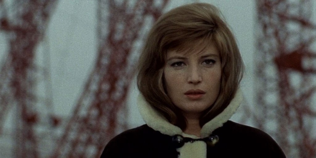 Michelangelo Antonioni is a divisive auteur and I can understand why some people don’t like him – wealthy people being bored in slow narratives where nothing much happens. But I really like L’Eclisse and The Passenger as absorbing portraits of alienation. Red Desert (1964; Il deserto rosso) was advertised as Antonioni’s first film in colour, and it is interesting to see how he uses colour so deliberately and so strongly designed. But bright colours are minimal and stand out, a little obscured, in the grey industrial landscapes. Along with the industrial, electronic score, it sometimes feel like the characters are on Mars or in outer space, all of the scenery is just stark and depressing. The film focuses on Monica Vitti, wife to a factory executive and mother to a young boy, still struggling with anxiety and stress after being hospitalised for a car accident. Richard Harris is the visiting organiser who is attracted to Vitti and they circle around a possible affair. (I kept thinking about Harris being the one English speaking actor on the set, dubbed over in Italian; apparently he did not get along with Antonioni’s controlling direction). With red hair and elegant outfits, Vitti remains glamorous even in her troubled state, positioned in the frame against black dying rivers or a row of red painted radars. The industrial landscapes are so depressing and it works as an eco-text from my viewing. I loved the sequence in the middle where the characters wind up partying in a red room of a harbour shack and how it keeps building with incident, resulting in an arriving ship, threat of a pandemic (no escaping it!) and a deep mysterious fog. I liked Red Desert, though it was alienating and depressing, but had such excellent imagery and composition. I don’t know if I’ll revisit it soon but glad I finally saw it. Recommended.