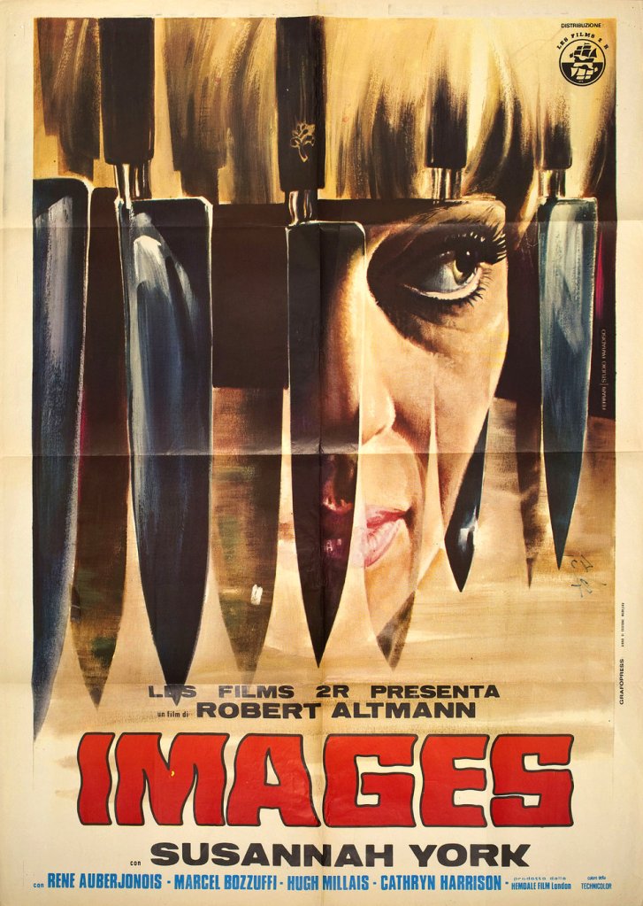 There’s something very eerie about a misty, green countryside and being alone in an old house. This is one aspect to the atmosphere of Images (1972), which Robert Altman directed after McCabe and Mrs Miller, an underrated psychological thriller that has gotten more attention in recent years. Susannah York plays Cathryn, an author of children’s books (one of her works, In Search Of Unicorns, we hear excerpts of in voice-over narration, and it was an actual children’s book that York wrote). We find her alone, trying to write one night in the apartment she shares with her husband, Hugh (René Auberjonois) and she starts receiving phone calls from a mystery woman claiming her husband is having an affair. She also starts to see things, and the movie plays with perspective, often bringing in an intruder into a scene or location, and we share the main character’s confusion: is this actually happening or is it all in her head? To find some peace of mind, the couple travel to their house out in the green, misty countryside (shot in County Wicklow, Ireland), Cathryn’s family childhood home, and the puzzle continues (also metaphorically acknowledged in a children’s puzzle that is brought out and pieced together throughout) with several guests dropping by, some real, some imagined. As a movie, Images taps into a dreamscape, psychological logic that preempts Altman’s later film, 3 Women. The cinematography by Vilmos Zsigmond is impressionistic with its use of darkness, light and shadows, finding ways of doubling images in mirrors and in edits. The unnerving tone is also expanded through composer John Williams’ use of folkish instruments and the clattering sound design organised by Japanese noise musician Stomu Yamashta. Susannah York is excellent, shifting from different states, fear, delight, desire, anger to occasionally returning the camera’s gaze. It is a puzzle movie that doesn’t resolve everything tidily and leaves a few horror flourishes in its wake; I was taken with its eerie, unsettling psychological journey. Available to stream on Tubi which uses the Arrow Video remastered version. Recommended.
