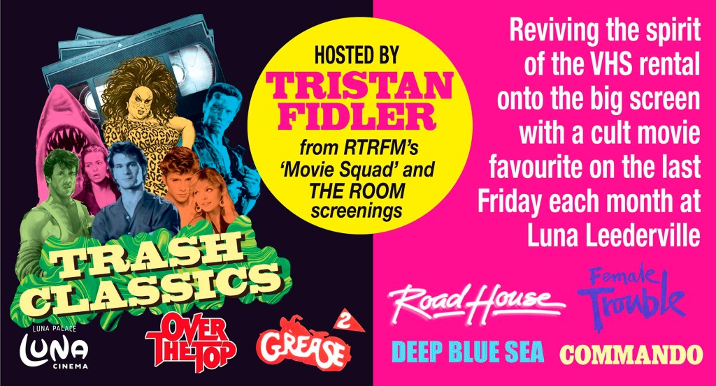 Trash Classics revives the spirit of the VHS rental onto the big screen with a cult movie favourite each month. Whether you are a raging fan or a curious newbie, these titles range from ‘so bad it’s good’ to ‘how did this get made?’, providing over-the-top entertainment and a wild night at the flicks. Hosted by Tristan Fidler (from RTRFM’s Movie Squad and The Room screenings).