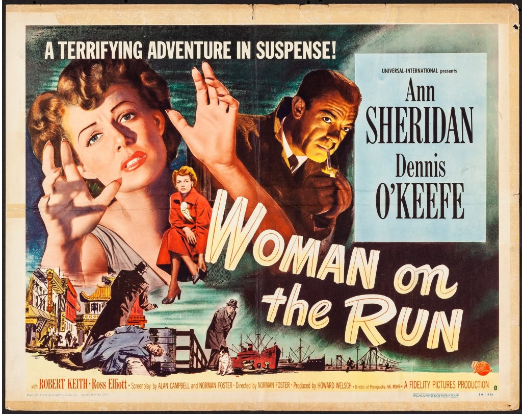 Woman On The Run (1950) is an effective and underrated film noir that’s under 80 minutes and has made me a fan of main star Ann Sheridan (who was also a silent co-producer on it). When her husband (Ross Elliott) witnesses a murder while walking their dog, he reports it to the police but gets cold feet when he realises the victim was testifying on an infamous mobster, so he goes on the run. While the police stick close to his weary wife (Sheridan), she tries to elude them while looking for her missing husband, teaming up with a sleazy news reporter (Dennis O’Keefe). Set in San Francisco with a great combo of location shooting and rear screen projection, we follow Sheridan’s character as she learns about her husband – their marriage is on the rocks with their dog the main thing keeping together. This is the 1950s, so the underlying theme is her learning to not be such a cold fish (and that her loser artist husband is actually a sweetheart), but Sheridan is so good as the character, weary looks and snarky one-liners in her trench-coat. There’s some warmth to these archetypes, even the killer gets a human moment of indecision. There’s great banter, a wisecracking cop (Robert Keith), good background characters, that friendly dog, some strong plot twists and a great climax set at an amusement park at night. Directed by Norman Foster and based on a short story by Sylvia Tate. Dialogue written by Ross Hunter (who would go on to produce Magnificent Obsession and Pillow Talk) and apparently Sheridan and O’Keefe contributed to their own lines as well. Streamed it on Kanopy but also available on YouTube. Recommended.