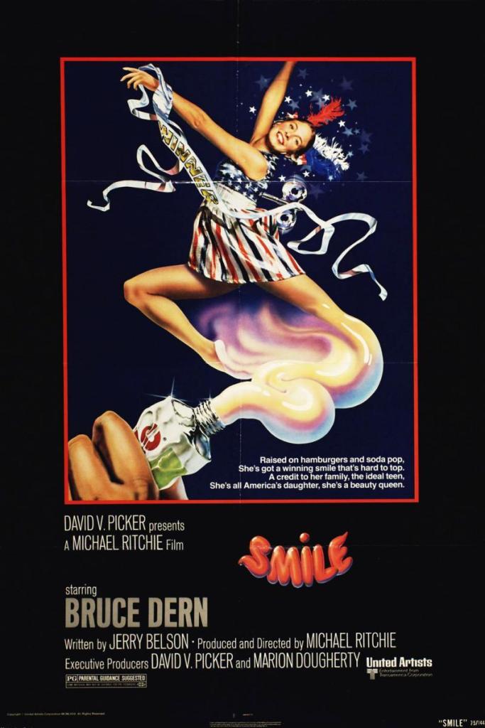 Smile (1975) is a forgotten satire about a beauty pageant in Santa Rosa, small town California, representative of the heartland. Written by Jerry Belson and directed by Michael Ritchie, there’s plenty of gags and one liners about the Young American Miss Pageant, which this movie observes, from the preparations to talent show routines to the announcement of the winners. Yet the movie isn’t targeting the high school girl contestants, its satirical focus is more about the community around them, the organisers and committee members. Ritchie as a director had already made the political satire The Candidate at this point, and there’s a similar semi-documentary style; it’s not a broad lampoon, but grounded and taking in all the buzz and chaos. The main theme is the relentless positivity and overconfidence – “smile even though your heart is breaking”, Nat King Cole sings over the opening credits – that is characterised as a very American quality, the bright and cheery commercials and consumerism papering over anything potentially difficult or depressing. Bruce Dern was often typecast as a troubled or disturbed guy in movies from this era, so its fun to see him as a toothy booster, a car salesman named Bob Friendlander who is also one of the pageant judges. He and the chief chaperone and organiser Brenda DiCarlo (Barbara Fenton from Get Smart) are introduced as enthusiastic supporters of the event, wide eyed focus on this most important time of year. Other sub-plots emerge such as Bob’s son, Little Bob and his friends trying to spy on the contestants, the drunken janitor worried about the plumbing, and the committee chairman fretting over the money being spent. When one character is built up, a visiting big-time choreographer, I was worried that this was going to be a dated stereotype; instead, the choreographer is played by an actual choreographer, Michael Kidd, who is hilariously disgruntled and curt. Amongst the cast of contestants are future stars (Melanie Griffiths) and favourites from the era (Colleen Camp), yet the two who emerge as the most interesting are Annette O’Toole and Joan Prather who are roommates, and take the roles of practiced operator and inexperienced naivety respectively. The film is definitely in the wheelhouse of a Robert Altman film but has a lighter touch; it’s not as blunt or sarcastic, and is warmer to its characters even as they are ridiculed. Conrad Hall’s beautiful cinematography looks great on the remastered Blu-ray release from Fun City Editions. Recommended.