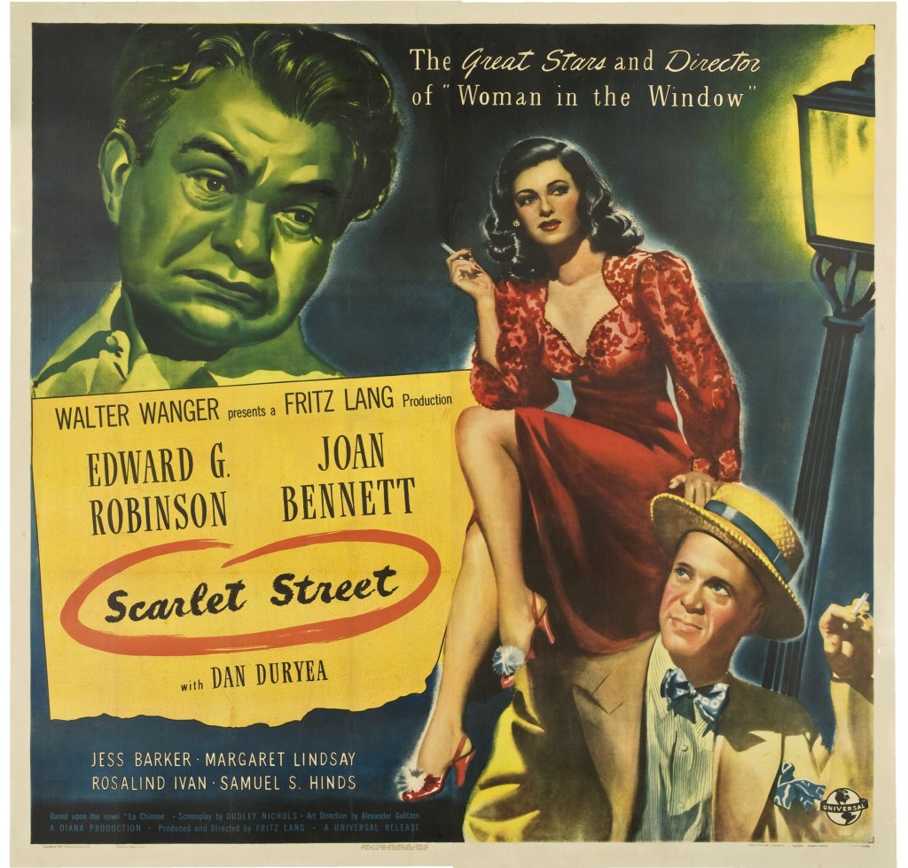 When a movie is in the public domain and is available everywhere, I often think that makes people less likely to check it out, particularly when there are some shocking versions in poor quality or if its a black-and-white movie that’s been colourised. Scarlet Street (1945) is in the public domain and I was also reluctant to seek it out, as I remember Martin Scorsese examining it in his Personal Journey Through American Cinema, and showing a key murder scene from it. Basically I had the impression of what type of film noir Scarlet Street would be, a poor sap cashier (Edward G. Robinson) giving over to dark impulses when he rescues a dame (Joan Bennett) walking home through the late night streets of Greenwich Village. His attraction is returned, but only because the dame’s seedy boyfriend (Dan Duryea) wants to bilk the cashier for money, effectively pimping her out for a potential blackmail frame. Directed by Fritz Lang, Scarlet Street was what I expected but was surprisingly more than what I expected. I love film noir for its archetypes and conventions, but you can always feel a master’s hand at the wheel when the characters are given more shading and the plot makes strange detours, such as where Robinson’s love of art and painting intersects in this whole set-up, or how the movie continues on past where you think it might end, opening itself up to an Edgar Allan Poe type gothic psychodrama. Robinson is great as the straight-arrow gent who ruins himself over a mid-life crisis, Bennett complicates the femme fatale role by being brashy and fed-up, playing a role as the character is also an amateur actor, and Duryea effectively portrays the sleazy and unpleasant operator. With how the camera moves in at certain points, or the framing of scenes, or just the inclusion of certain details that help make moments come alive, Lang and his collaborators make sure the film delivers more than you might have bargained for. Available to stream on Tubi and Kanopy, as well as rent/purchase on iTunes. Recommended.