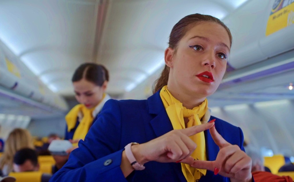 “Your uniform is your armour.” Something to this effect is told to the flight attendants taking a training course. Cassandre (Adèle Exarchopoulos) knows this, but has some difficulty participating in a smiling exercise. “Leave your emotions behind.” Zero Fucks Given (2021) is an observational workplace drama, which follows Cassandre on her rounds as an attendant for a fictional cheap airline called Wing. The film provides an insight into the grind, particularly attendants having to reach daily targets for sales. And this all seems to suit Cassandre’s aimlessness, content to work, party at night, or scroll through dating apps. We eventually learn that Cassanre is also processing grief of a lost family member. Her directionless eventually hits a wall with Wing’s corporate strategies. Attendants have to be graduated to being team leaders. “I don’t want any responsibilities,” Cassandre says.