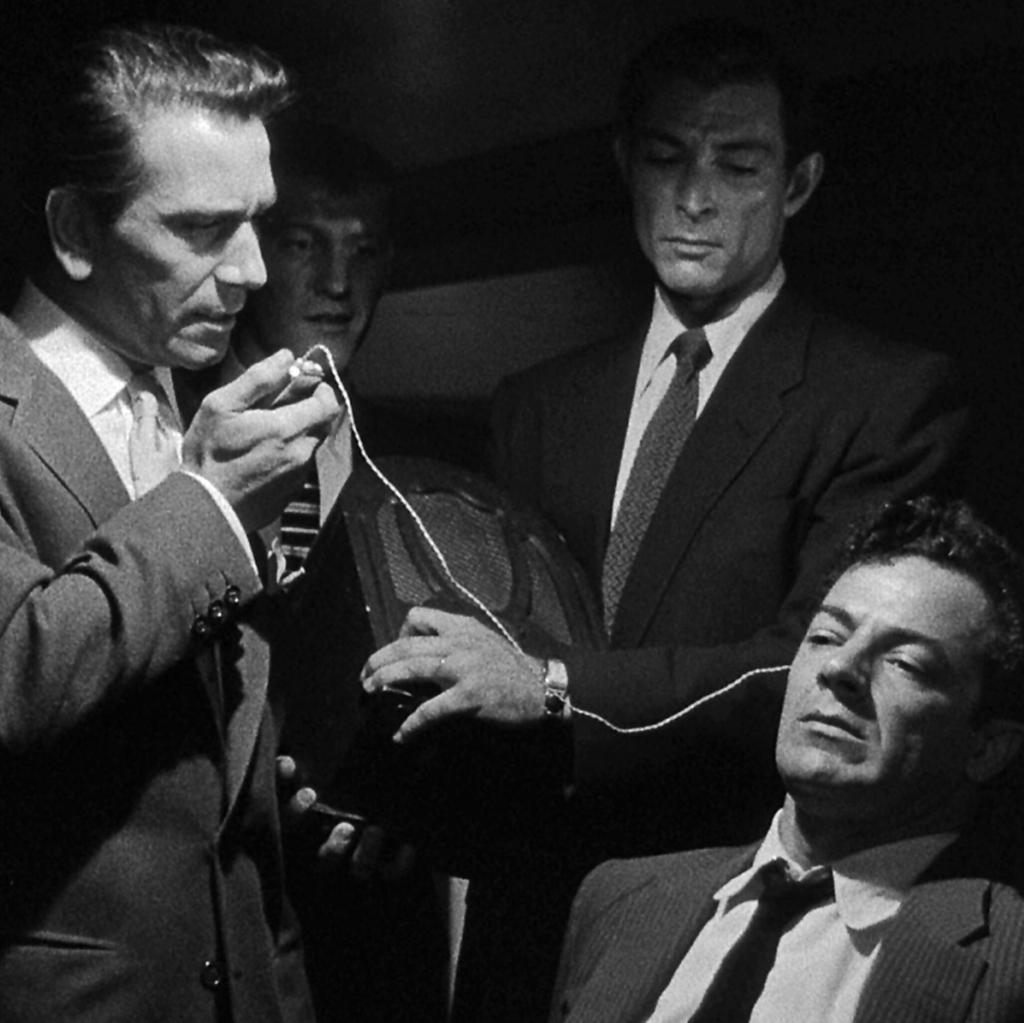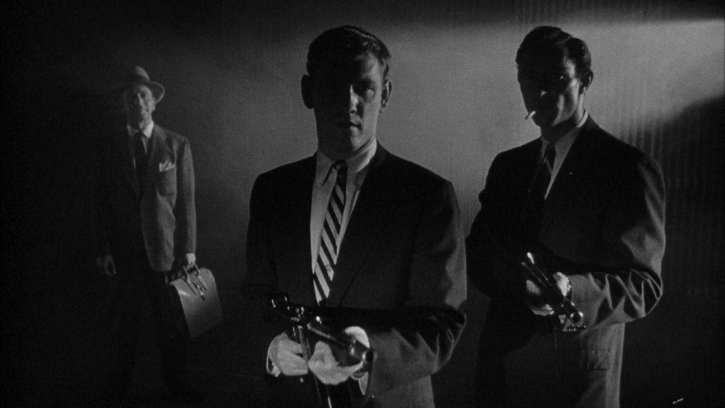 There are images in The Big Combo (1955) that are everything you want from a classic Film Noir. Opening with a woman stepping down a darkly lit corridor, backstage to a boxing match, pursued by suited figures. Later, a man in a suit wearing a hat emerges from the fog outside, stepping into a hangar to catch up with his nemesis. Or a room filled with darkness and faces like a young Lee Van Cleef, lit from below, dramatically emphasising a world of suspicion. Every frame of painting or in this case, every frame a perfect still for an academic book on Film Noir.