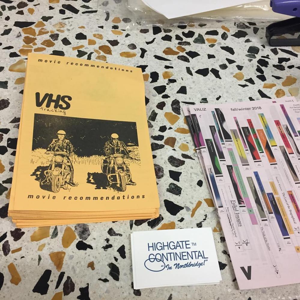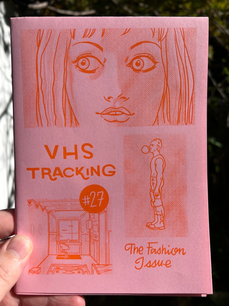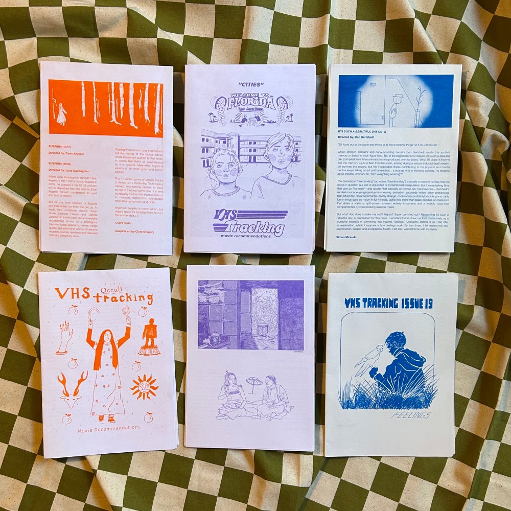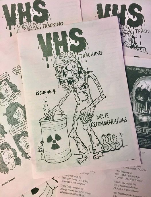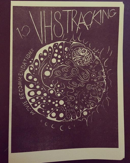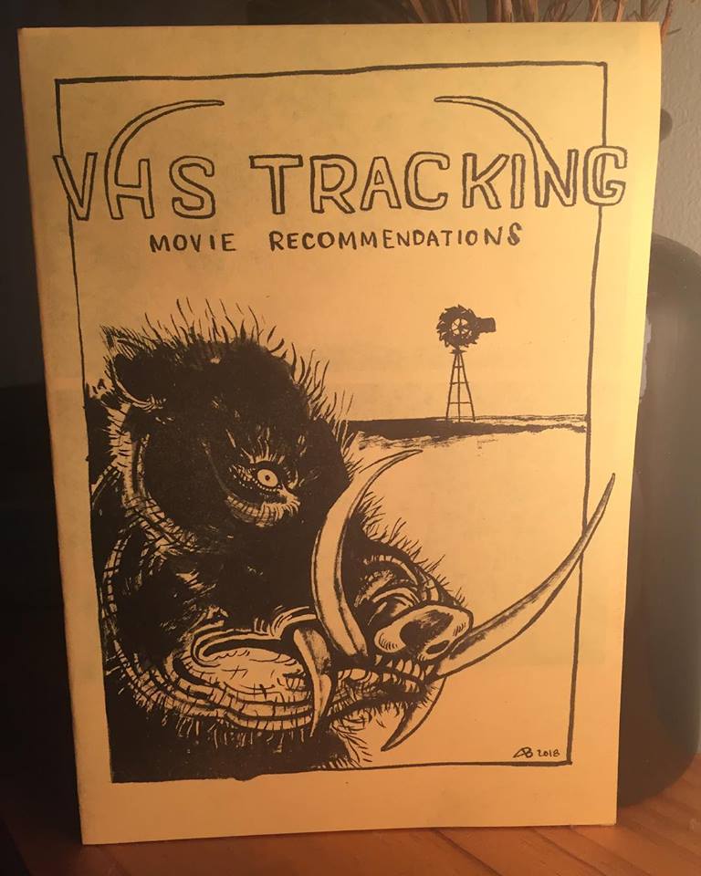 VHS Tracking is a zine of movie recommendations. A variety of writers and artists contribute to each issue, and some issues have a theme. Cover art is based on a movie covered in the zine.